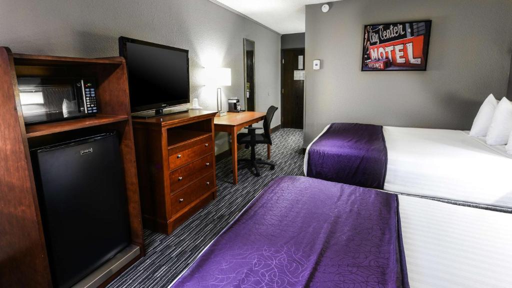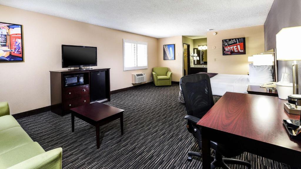The contemporary guest rooms at Best Western McCarran Inn are equipped with flat-screen cable TV. A coffee maker and a work desk with ergonomic chair are provided.