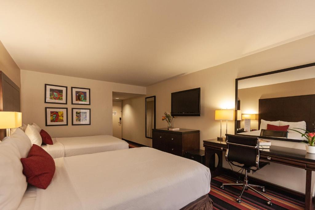 Each room offers modern décor with white walls, bright color accents and dark wood furniture. A coffee maker, in-room movies and a work desk are standard amenities in Clarion Hotel New Orleans – Airport & Conference Center