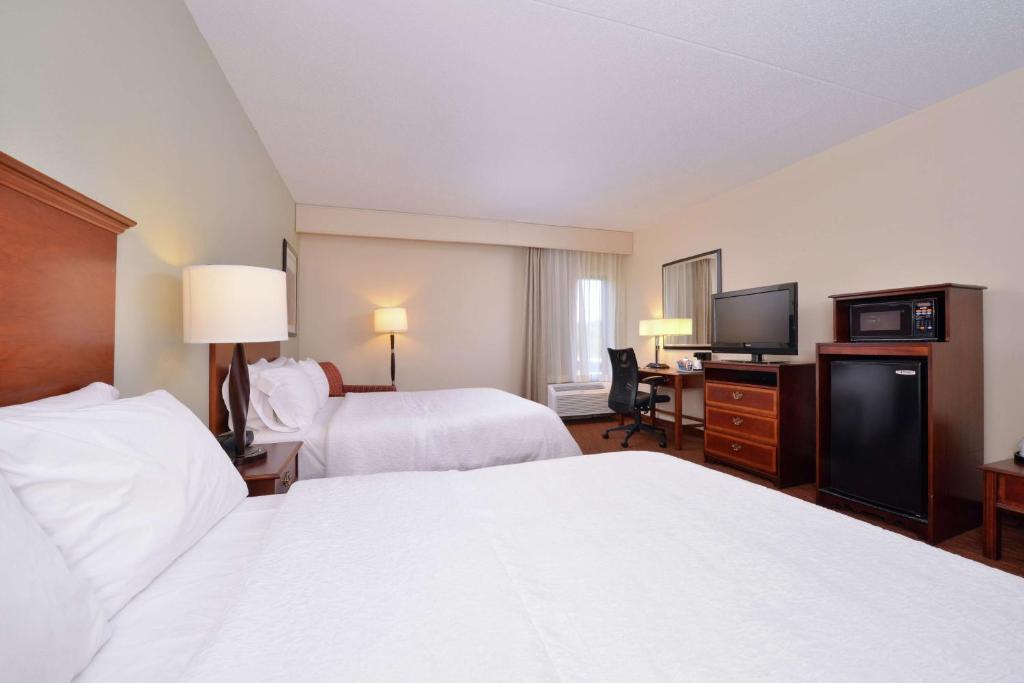 Guest rooms at the Hampton Inn Waynesboro/Stuarts Draft are equipped with a 32-inch flat-screen TV. A microwave, refrigerator and coffee maker are also included.