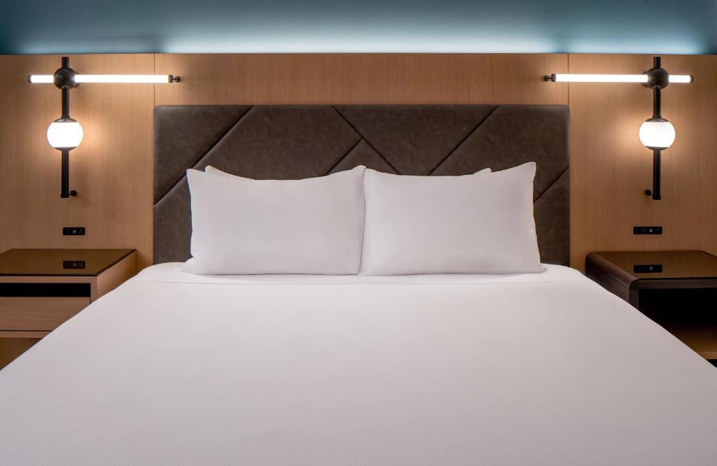 A flat-screen TV, an iPod docking station and luxury bath amenities are standard in every spacious guest room at the San Francisco Hyatt Regency. Rooms are styled in modern dark wood furnishings, steel fixtures and plush white linens.