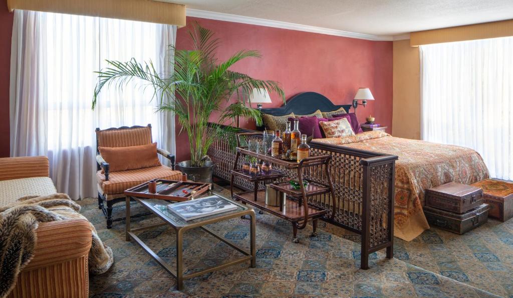 California Mediterranean cuisine is available 24 hours a day in-suite. Meals are created with local organic produce.
