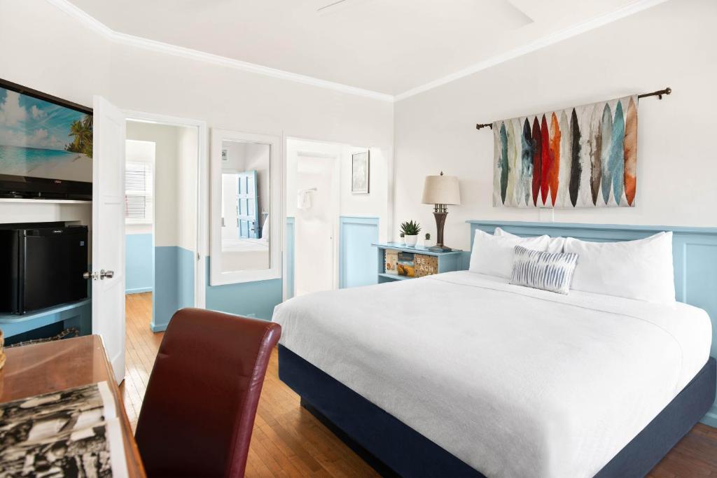 Flat-screen cable TVs and a small fridge are standard in every room at Sea Blue Hotel. Each warmly decorated room has hardwood floors and vintage Hawaiian art prints. A hairdryer, an iron & ironing board are also included in all room types.