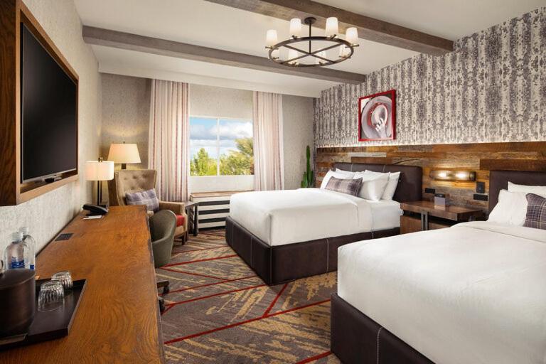 This newly reopened hotel, where boutique comfort meets the rustic charm of a modern lodge, is located less than 5 miles from the Las Vegas Strip and features its own 90,000-square-foot casino. It offers a free scheduled shuttle to Harry Reid International Airport with 24-hour advance reservations.