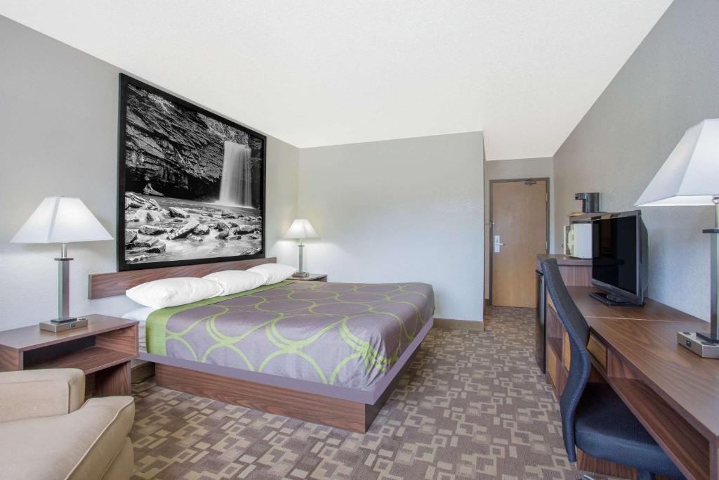 The Super 8 Appomattox offers guest rooms with a microwave, refrigerator, and cable TV. They are simply decorated with carpeted flooring and wood furnishings.