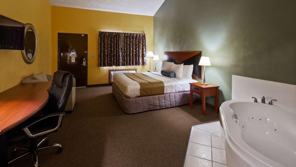 All spacious guest rooms have refrigerators, hair dryers, microwaves, coffee makers, irons and ironing boards. Some rooms come equipped with desks and microwaves. Select rooms offered also have whirlpool bathtubs. Non-smoking and Accessible rooms are offered.